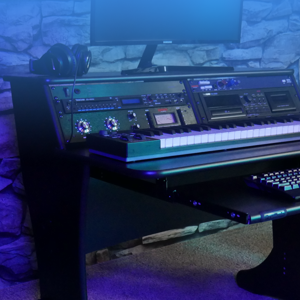 The ProRak LS840 Studio Workstation is built for creators who want their space to feel like a real, professional studio, not just a room with gear. With a spacious desktop, dual rack bays, and clean cable management, it provides total control over your layout, removing the clutter and friction that hold you back. This desk is an investment in a focused, inspiring workspace that reflects your commitment to music and supports you at every stage of your creative process.