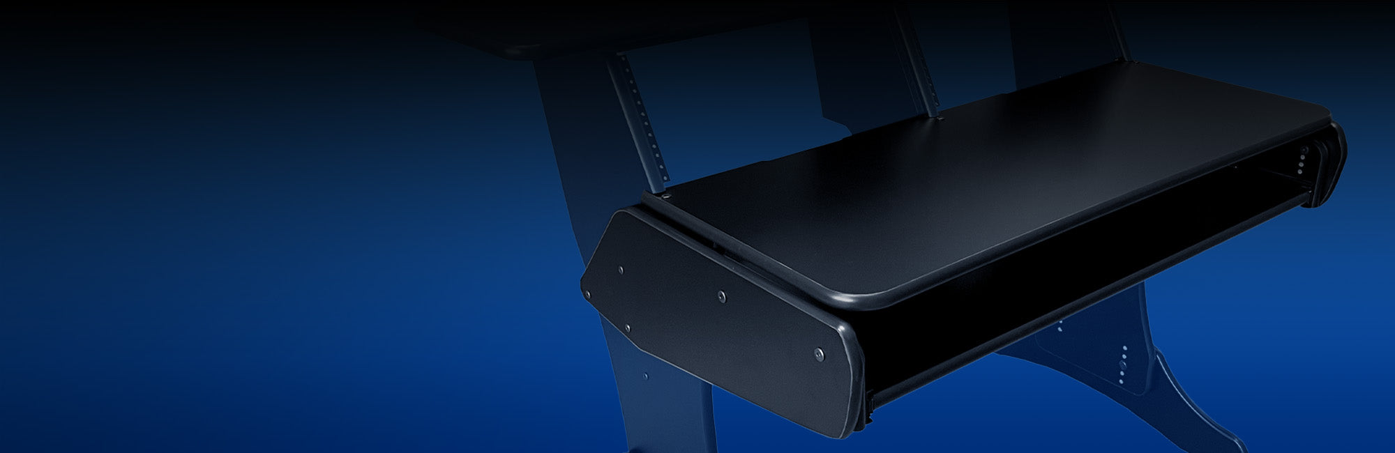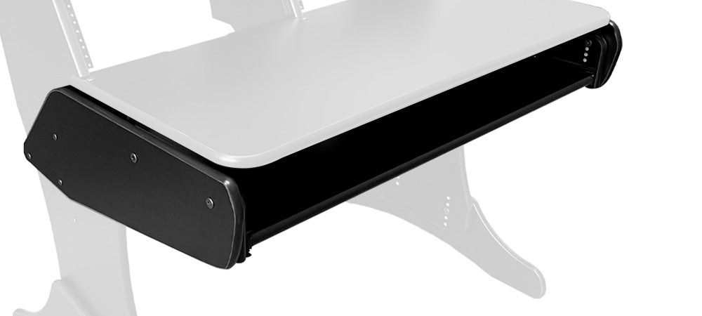 Enhance your studio workstation with the black keyboard tray expansion kit for LS840 Studio Desk from RAB Audio. Larger than the standard LS840 keyboard tray, this optional add on to the LS840 features a 38" x 16" surface area for a larger keyboard or additional equipment.